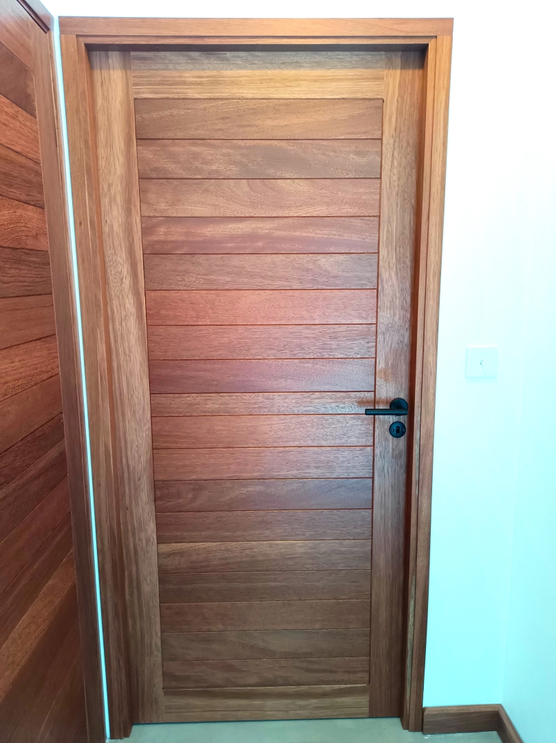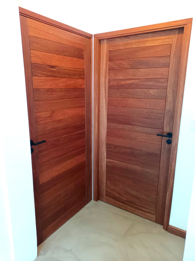 Portes intérieures en Limbali, finition vernis mat